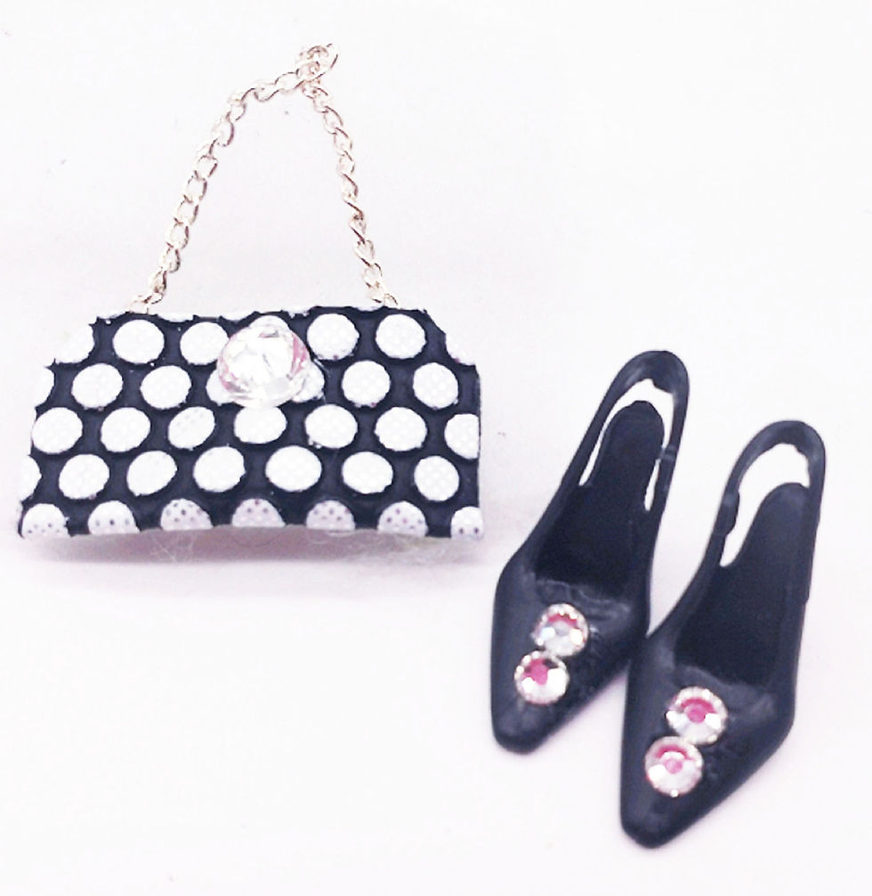 Designer HEELS & PURSE With BLING! Fits Fashion Dolls or Barbie pkg #3