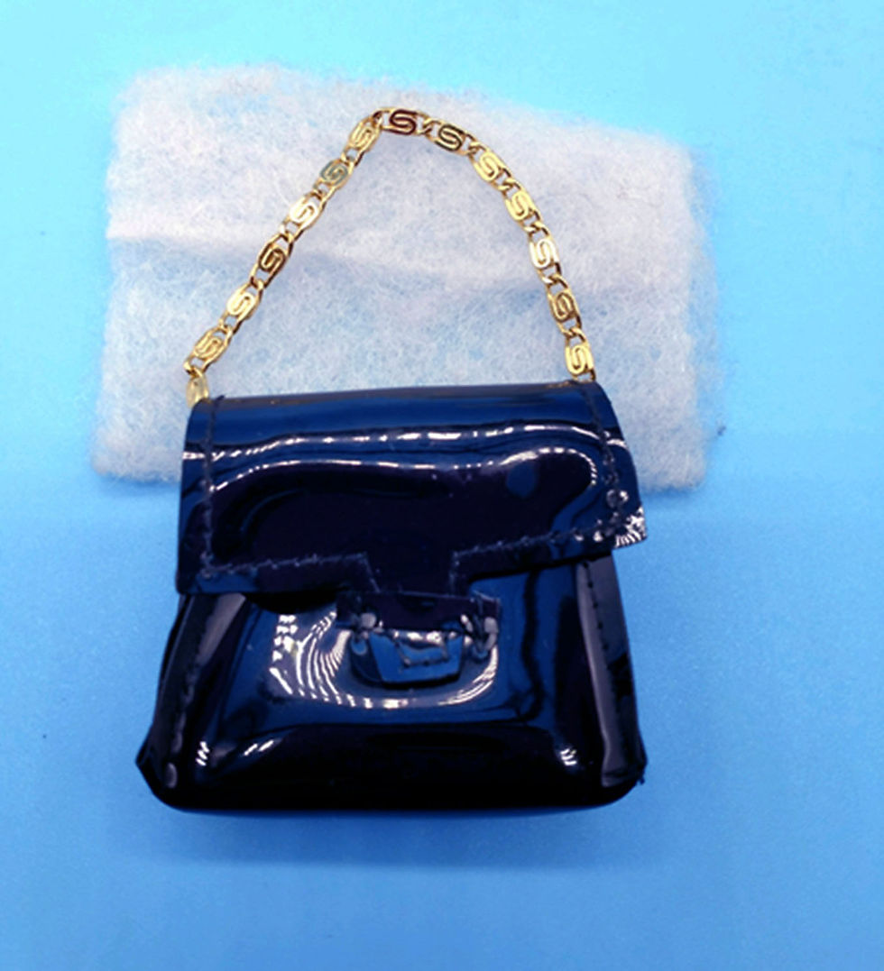 Vintage Barbie BLACK SHINY VINYL PURSE WITH CHAIN MINT!
